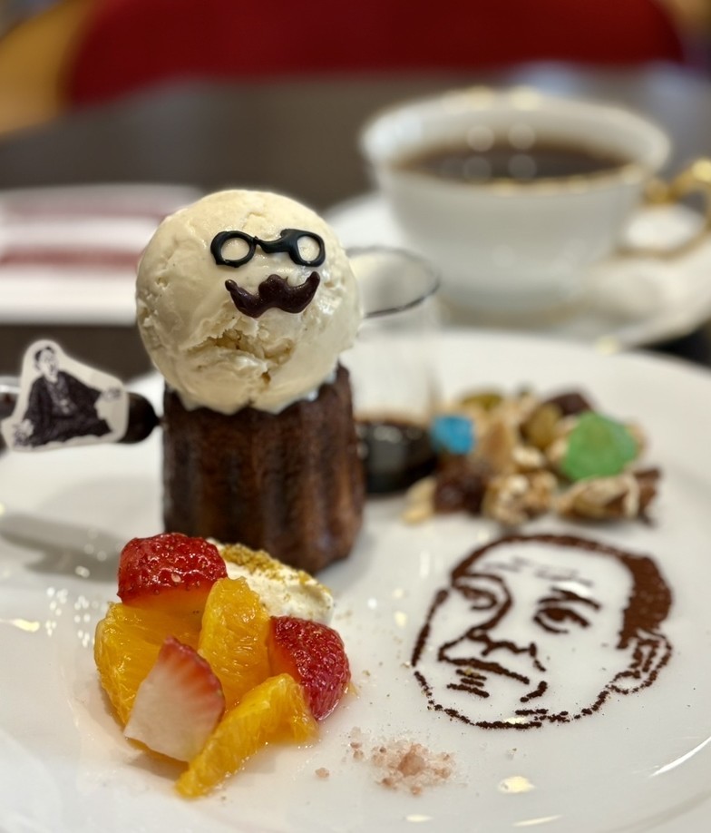 カフェ八角塔の特徴の1つは、慶應義塾ミュージアム・コモンズ(KeMCo)、アート・センターや塾史展示館とのコラボレーションによる限定メニューである。展覧会のテーマにちなんだスイーツやドリンクが提供され、展示の前後に訪れる方も多い。6月3日からKeMCoにて開催される高橋誠一郎浮世絵コレクションの一部を展示する「夢見る!歌麿 謎めく?写楽」展では、期間により歌麿や写楽に着想を得た2種類のパフェが展覧会を盛り上げる。