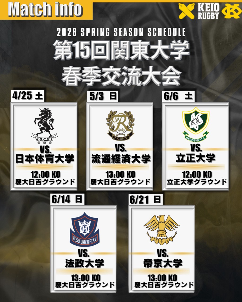 5/3(日) 流通経済大学戦 13:00K.O. @慶大日吉グラウンド
